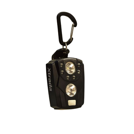 更に標準装備でカラビナとクリップが付いているので、 ライフジャケットやズボンに取り付けて使用可能。