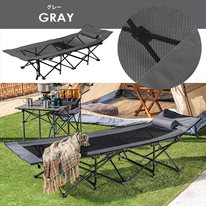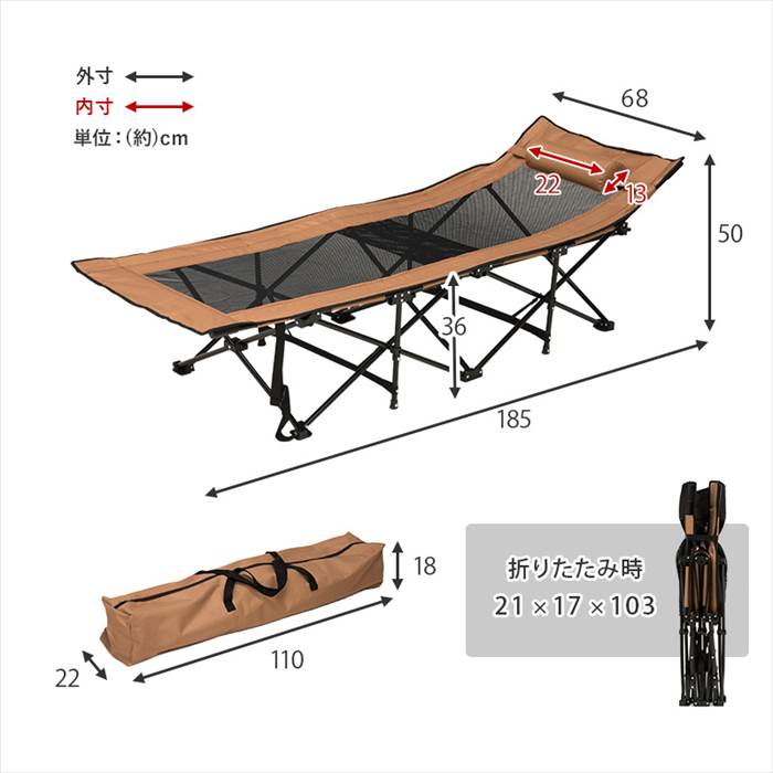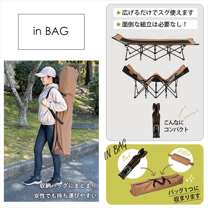 | ・■折りたたみ式/■持ち運び用バッグ付 ■移動できる枕付/■折りたたみ時サイズ:21X17X103cm |