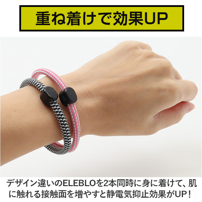 ・デザイン違いのELEBLOを2本同時に身に着けて、肌に触れる接触面を増やすと静電気抑止効果がUP!