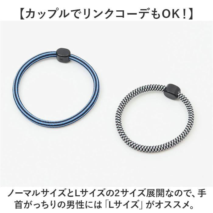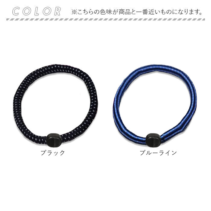 ・伸縮性の高い落ち着いたカラーのゴムに、明るい色彩の糸を緻密に編み込んだユニセックスデザイン。