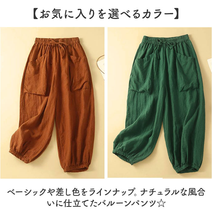 | バルーンパンツ 麻混紡 コクーンパンツ ゆったり |