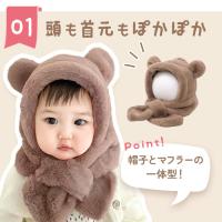 | キッズ ベビー 帽子 マフラー 一体 くま |