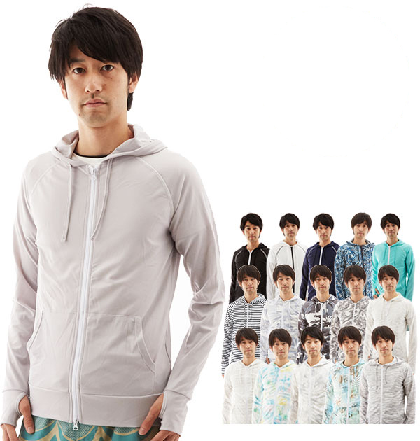 | アウトドアでの擦り傷や日焼けなどから身を守るラッシュガード。サーフィンなどマリンスポーツウェアとして使われています。日焼け防止、速乾、伸縮性に優れており、動きやすくサラッとした肌触り。肌の露出対策にも最適です。フルジップで脱ぎ着しやすい☆フードが首と頭部への日焼け・直射日光を防ぎ、体力低下を予防してくれます。指穴つきで指元まで紫外線防止。ジップガードが肌の挟み込みを防ぎます。小物が入れられるポケット付き。軽量でシワになりにくいので旅行にも持っていきやすい♪耐塩素なのでプールでも安心です。オールシーズンでレジャーを快適に楽しめます。 ※タグには、UPF50+と書いてありませんが、紫外線カット率UPF50+に対応しております。 |