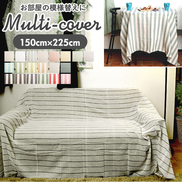 | 長い間愛用されている人気のストライプ柄、ストライプマルチカバーです。様々な用途に使えて便利♪温かみのある色合いが魅力です。シングルベッドのカバーとしておススメのサイズです。 |