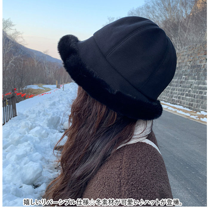 バケット ハット レディース 冬 通販 バケットハット 秋冬 帽子 バケハ ファーハット ボアハット もこもこ ふわふわ つば広 あったか 暖かい 温かい