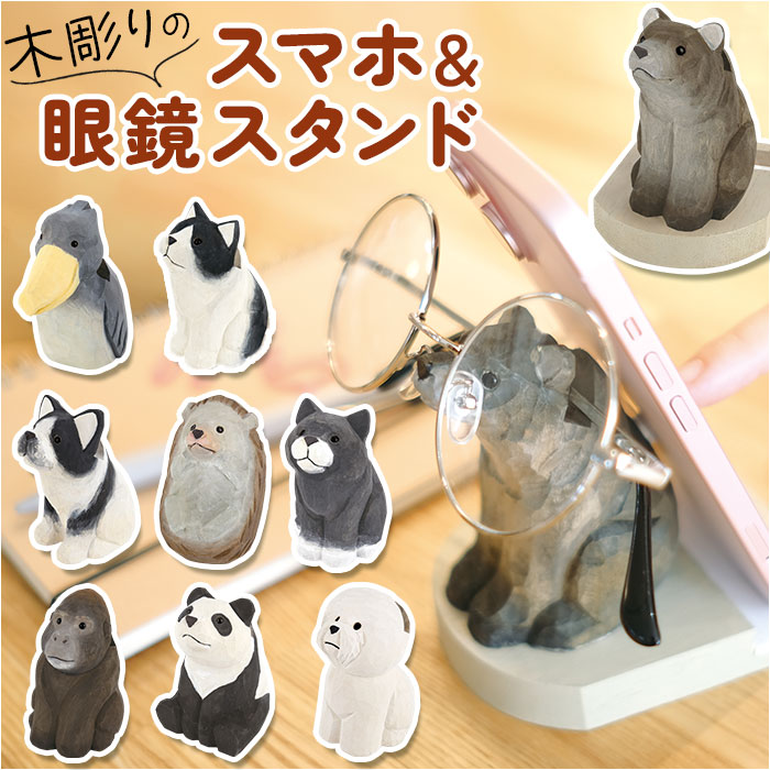 | 【デザイン性も機能性もイイトコドリ】 ・ちょこんと置いて、デスクも片付く!癒やし効果抜群の「Fika スマホ&眼鏡スタンド」。 【スマホとメガネをひとまとめ】 ・背中でスマホを支えつつ、メガネやサングラスも収納。1人2役のアニマルたち☆ 【木彫りのナチュラル感と優しい表情】 ・天然木を掘って作られた、温かみのある風合い。愛らしいアニマルの姿に心もほっこり♪ 【縦横両用のスマホスタンド】 ・台座の溝にスマホを置いて、背中に立てかけ。縦横お好みでセットできるのが嬉しい! 【横向きなら、充電したまま使用OK】 ・スマホを横向きにすると、充電中も操作できて便利。動画視聴にもおすすめ。 【スマホを保護するクッション付き】 ・アニマルの背面にはミニクッション材。スマホ背面がスタンドに直接触れず、傷や擦れをガード。 【外したメガネもすっきり迷子知らず】 ・お顔部分にメガネをON!置き場所に困らず、デスクまわりをおしゃれに整頓。 (※)メガネの形状によっては、スタンドにはまらない場合もございます。 【2台並べてタブレットスタンドに】 ・スタンドを2台並べて、タブレットを立てかけ。安定感もあり、作業がスムーズに。 【色んなシーンで活躍する相棒】 ・就寝前の枕元やデスクまわり、お料理中のキッチンなど。置いておくだけでもインテリアに! 【願いが込められたアニマルデザイン】 ・それぞれのアニマルに、幸せを祈る願いを込めて♪窓付きのクラフトボックス入りでギフトにも。 |