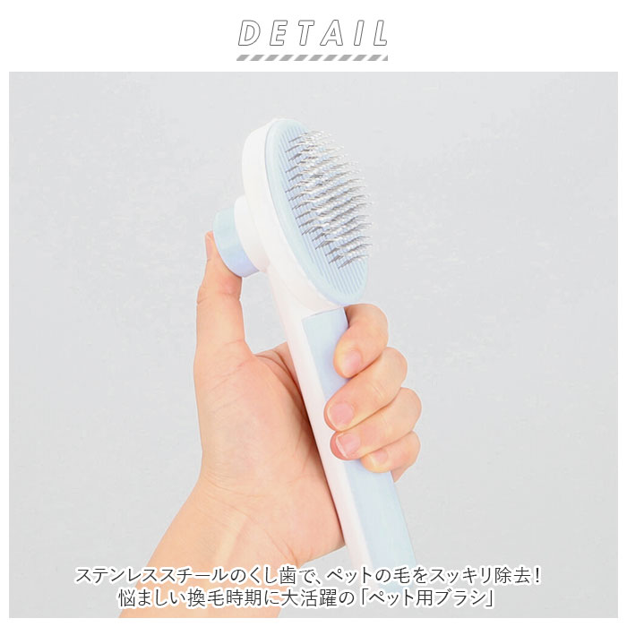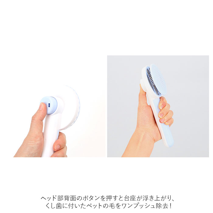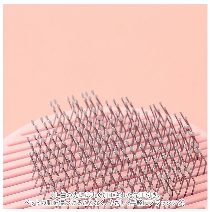 | ・ステンレススチールのくし歯で、ペットの毛をスッキリ除去!悩ましい換毛時期に大活躍の「ペット用ブラシ」 ・ヘッド部背面のボタンを押すと台座が浮き上がり、くし歯に付いたペットの毛をワンプッシュ除去!あとは毛玉をポンッとくずかごに捨てるだけ! ・くし歯の中央が適度に傾斜しているため、長毛種のネコちゃんの絡まった体毛もスムーズにキャッチ。 ・くし歯の先には丸く加工された先玉付き。ペットの肌を傷つけることなく、やさしく手軽にブラッシング。 ・抜け毛を取り除くだけではなく、ワンちゃんやネコちゃんの毛づやをよくするためのマッサージ用にも最適♪ ・日頃のブラッシングケアでフロアに落ちる抜け毛が軽減し、お掃除がとっても楽ちん。ペットも飼い主さんも毎日笑顔に♪ ・毎日のこまめなブラッシングで、大切なペットとスキンシップを図りたい飼い主さんにオススメ。 |