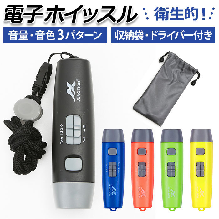 | ・口で吹かないから、衛生的!スポーツやイベントで活躍する電子ホイッスルが新登場。 ・ボタンをワンプッシュするだけでON/OFFの切り替えが簡単な、電池式の次世代型ホイッスル。 ・大きく息を吹きこんで音を鳴らす従来のホイッスルに比べ、直接口で咥える必要がないので、ウィルス対策や衛生面でも安心。 ・ご使用のシーンに応じて、ホイッスルの音量は3段階、音色も3種類から使い分けることが可能。 ・単4形乾電池3本使用。ホイッスル背面のカバーは簡単に外すことができ、電池交換も手間いらず。(※電池は別売りです。) ・運動会などのイベントでの使用はもちろん、登山やアウトドアで緊急時の注意喚起用にも最適。スポーツで審判やラインズマンを務められるプロの方にもオススメ。 ・首から掛けて使えるネックストラップ、専用収納袋、電池取り出し用のミニドライバーが付属。 |