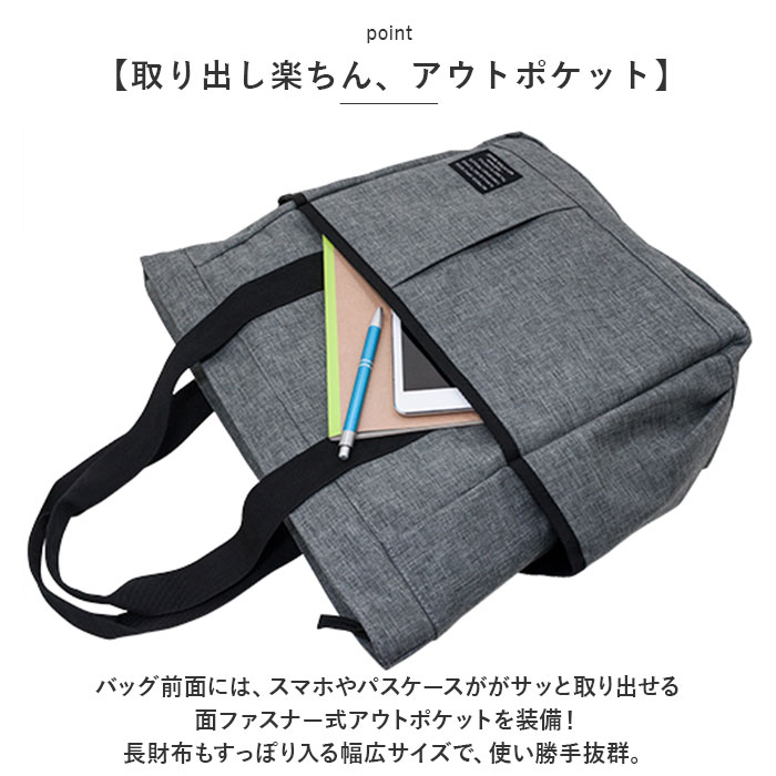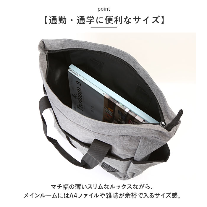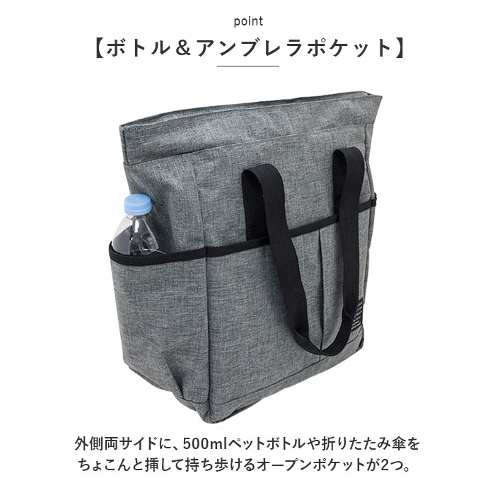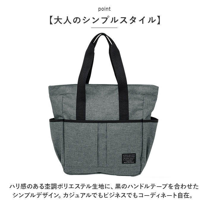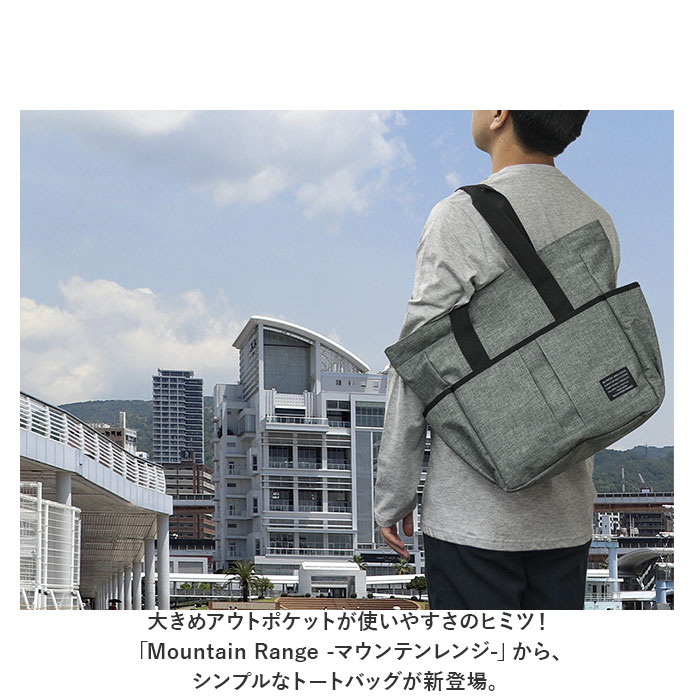 | ・大きめアウトポケットが使いやすさのヒミツ!「Mountain Range -マウンテンレンジ-」から、シンプルなトートバッグが新登場。 【通勤・通学に便利なサイズ】 ・マチ幅の薄いスリムなルックスながら、メインルームにはA4ファイルや雑誌が余裕で入るサイズ感。タウンユースはもちろん、通勤通学用トートにオススメ。 【安心の天ファスナー仕様】 ・メインルーム開口部は、小物が飛び出す心配のない天ファスナータイプ。満員電車など混雑した場所でもプライバシーを守る安心設計。 【取り出し楽ちん、アウトポケット】 ・バッグ前面には、スマホやパスケースががサッと取り出せる面ファスナー式アウトポケットを装備!長財布もすっぽり入る幅広サイズで、使い勝手抜群。 【ボトル&アンブレラポケット】 ・外側両サイドに、500mlペットボトルや折りたたみ傘をちょこんと挿して持ち歩けるオープンポケットが2つ。 【大人のシンプルスタイル】 ・ハリ感のある杢調ポリエステル生地に、黒のハンドルテープを合わせたシンプルデザイン。カジュアルでもビジネスでもコーディネート自在。 【ポケット仕様】 [バッグ前面]面ファスナー式ポケット×1 [外側両サイド]オープンポケット×2 |
