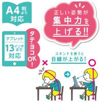 ・ブック&タブレットスタンドで、いつだって見やすい位置に固定!正しい姿勢で勉強や仕事をすることができるので集中力がUP☆ ・本やタブレットを押さえるためのアームは可動式。本やタブレット端末の厚みに合わせて、ちょうど良い位置で固定することが可能。 ・スタンドの角度は6段階に調節できるため、机の高さが変わっても最適な角度をキープ!目線が上がって、正しい姿勢が保てるのが嬉しいポイント。 ・ハンズフリーで両手がふさがらないから、読書や勉強・お仕事がめきめきはかどる!テレワークにもオススメ。 ・折りたたむと厚みわずか約18mmになるコンパクト設計で、収納時や持ち運びにとっても便利♪ |