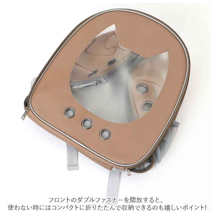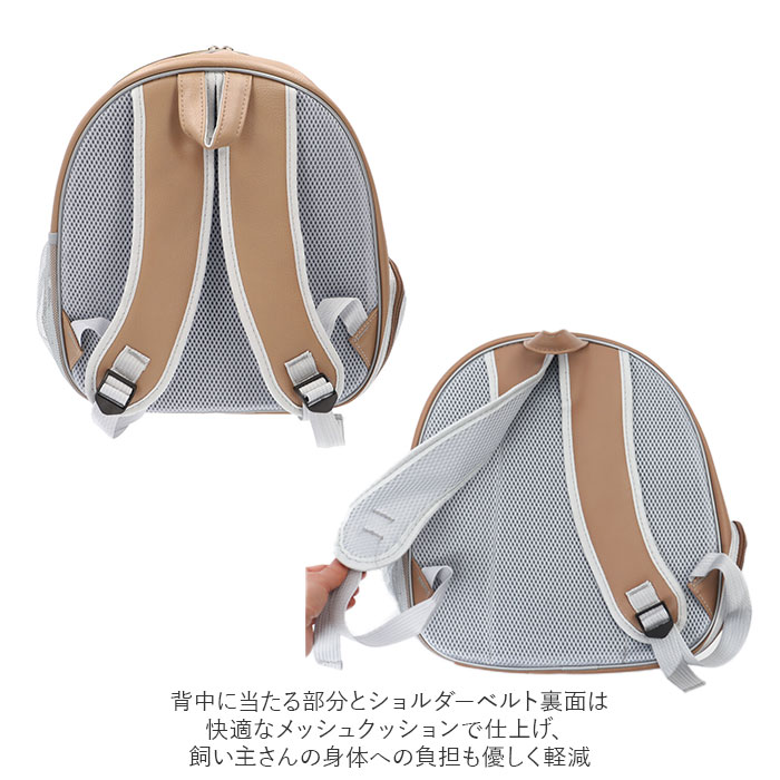 | ・ペットの様子がひと目でわかる、クリアウィンドウ付き!お出掛けに便利な「リュック型ペットキャリー」が新登場。 ・キャリーバッグ正面と両側面に設けた7個の大きな通気孔と2つのメッシュ窓で通気性をしっかりと確保し、蒸し暑さの気になる季節でも快適。 ・ネコの顔のカタチの透明窓がチャームポイント!リュック正面のラウンドファスナーが大きく開いてペットの出入りがスムーズ。 ・外出中はペットも内側から外を眺めることができるので、人見知りのネコちゃんもリラックス。 ・左側面のメッシュ小窓のファスナーは、外出先でおやつをあげたり、ネコちゃんの頭を撫でで安心させてあげたいときに大活躍。 ・付属の中敷きマットは、肌触りの優しいふわふわ生地面とオールシーズン使えるフラット面、シーンに合わせて使い分けができるリバーシブルタイプ。 ・バッグの右サイドには、お気に入りのおやつやペット用ウェットティッシュの収納に便利なメッシュポケット付き。 ・背中に当たる部分とショルダーベルト裏面は快適なメッシュクッションで仕上げ、飼い主さんの身体への負担も優しく軽減。 ・フロントのダブルファスナーを開放すると、使わない時にはコンパクトに折りたたんで収納できるのも嬉しいポイント! ・ペットの様子がつぶさに見てとれるクリア窓付きペットキャリーで、動物病院に連れて行く時もとっても安心♪ |