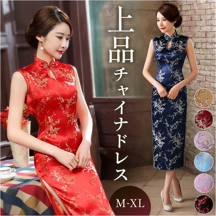 チャイナドレス ノースリーブ 通販 チャイナ服 ワンピース チャイナ パーティードレス ロングワンピース ロングドレス レディース チャイナ風 コスプレ