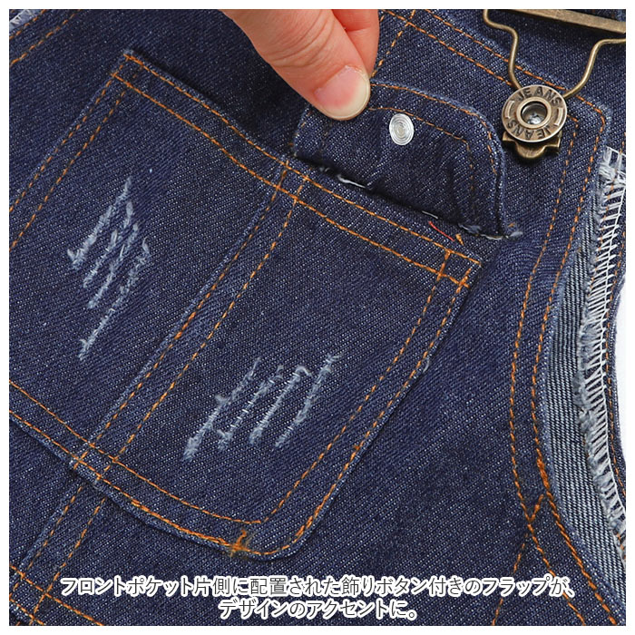 | ・おしゃれキッズにおすすめ!デニムオーバーオールが新登場。 ・ほんのりダメージデザインを施したオーバーオール。(※デザインには個体差があります。) ・両サイドにボタン付きで、着脱ラクチン。 ・肩紐部分は長さ調節が可能。 ・フロントポケット片側に配置された飾りボタン付きのフラップが、デザインのアクセントに。 ・前後左右にポケット付き。 ・バックには三角ステッチデザイン! ・裾をロールアップすれば、おしゃれ感アップ★ ・トップスを変えたり、パーカーなど羽織りをプラスすることで、オールシーズン活躍。 |