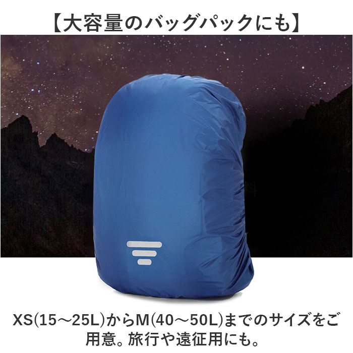 | 【雨や雪からカバー!】 ・雨の日のお出かけやレジャー用におすすめなリュックカバー。 【はっ水加工で雨や汚れ対策に】 ・カバー生地にははっすい加工を施し、雨や雪はもちろん汚れも付きにくい! 【リフレクター付き】 ・夜道や薄暗い天気が悪い日も安心♪反射して光るリフレクタープリント。 【かぶせるだけで装着完了】 ・開口部はゴム仕様になっているのでかぶせるだけで装着完了◎調節いらずなのがGOOD! 【大容量のバッグパックにも】 ・XS(15〜25L)からM(40〜50L)までのサイズをご用意。旅行や遠征用にも。 |