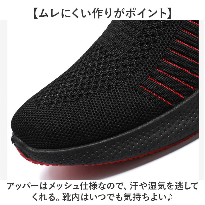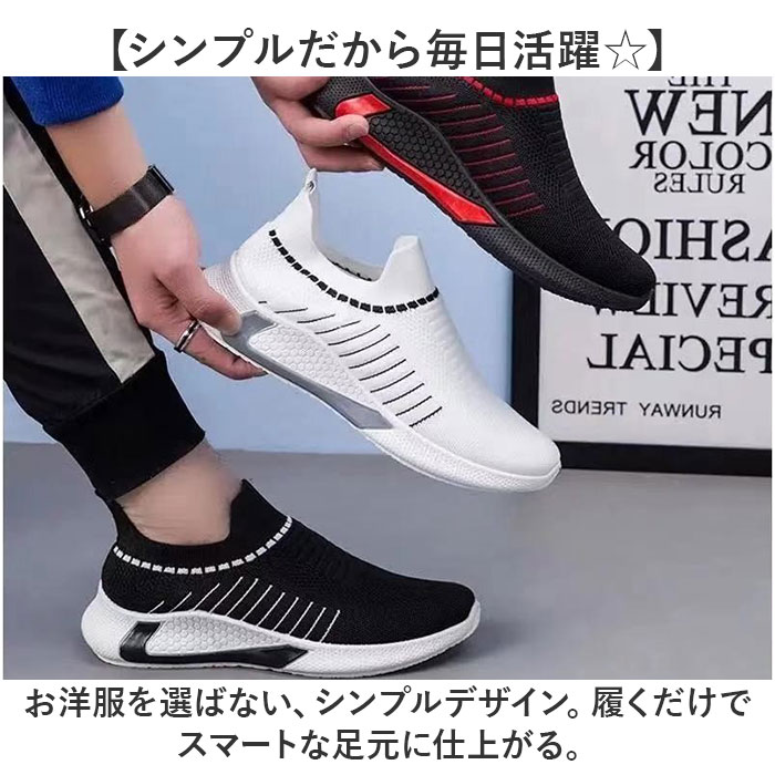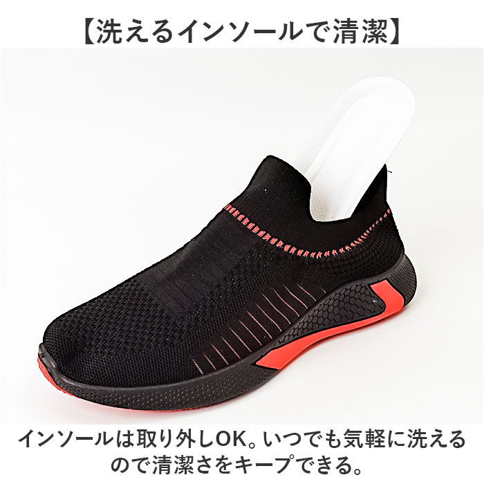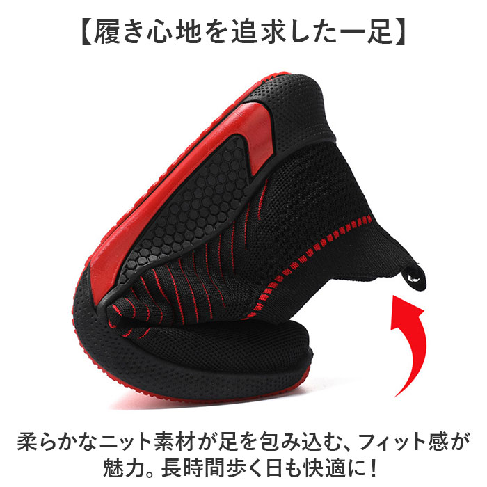 | 【足にフィットするニット素材♪】 ・毎日履ける、スマートなデザイン!スリッポン メンズ スニーカーが登場。 【履き心地を追求した一足】 ・柔らかなニット素材が足を包み込む、フィット感が魅力。長時間歩く日も快適に! 【ムレにくい作りがポイント】 ・アッパーはメッシュ仕様なので、汗や湿気を逃してくれる。靴内はいつでも気持ちよい♪ 【靴紐レスでラクラク簡単調節】 ・靴紐レスなので面倒な靴紐の結び直しが不要!立ち仕事やウォーキングなどにぴったり。 【着脱がラクなのびーる履き口】 ・履き口は伸縮性に優れた作りなので、着脱がラクチン!グンと伸びる伸縮性がGOOD。 【滑りにくいので雨の日も安心】 ・ソール部分は凸凹加工済み。雨の日の地面もしっかりグリップする、滑りにくい安心仕様。 【シンプルだから毎日活躍☆】 ・お洋服を選ばない、シンプルデザイン。履くだけでスマートな足元に仕上がる。 【洗えるインソールで清潔】 ・インソールは取り外しOK。いつでも気軽に洗えるので清潔さをキープできる。 |