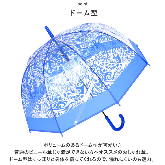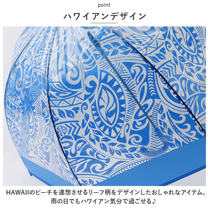 | ・ハワイアンデザイン×ドーム型のおしゃれ傘で雨の日のお出かけも楽しく♪「ドーム型 ビニール傘」が登場!(※親骨59cmタイプ) 【ドーム型】 ・ボリュームのあるドーム型が可愛い♪普通のビニール傘じゃ満足できない方へオススメのおしゃれ傘。ドーム型はすっぽりと身体を覆ってくれるので、濡れにくいのも魅力。 【丈夫なグラスファイバー製】 ・親骨は、強い風もしなやかに受け止めるグラスファイバー素材を使用しているので、強い風の日も安心◎ 【ジャンプ傘】 ・片手で開ける便利なジャンプ傘。荷物で手がふさがっていても大丈夫。パッと開いてすぐに使える。 【ちょうど良いサイズ】 ・親骨の長さ59センチと標準的な大人の長傘サイズ。日常使いにちょうど良い傘で、雨の日に活躍。 【スナップボタン式】 ・つゆ先をまとめる便利な留めバンドは、スナップボタン仕様。パチッと留めるだけで、濡れた傘も広がらず使いやすい◎ 【ハワイアンデザイン】 ・HAWAIIのビーチを連想させるリーフ柄をデザインしたおしゃれなアイテム。雨の日でもハワイアン気分で過ごせる♪ |