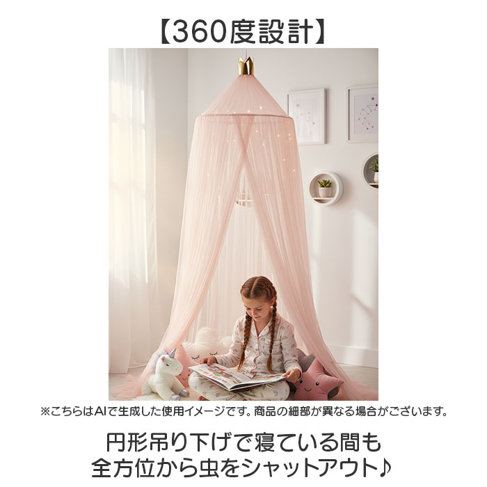 | 【ふわふわ空間でお姫様気分】 10層の紗が優しく包む天蓋で、夢見るような寝室に。 【360度設計】 ・円形吊り下げで寝ている間も全方位から虫をシャットアウト♪ 【10層紗のふんわり感】 ・何層にも重なる紗が優しく包み込む心地よい空間を実現◎ 【優しい色合いが魅力】 ・インテリアに溶け込む柔らかなカラーで空間を上品に演出。 【取り付けラクラク設計】 ・天井に吊るすだけの簡単設置で誰でもすぐに使い始められる〇 |