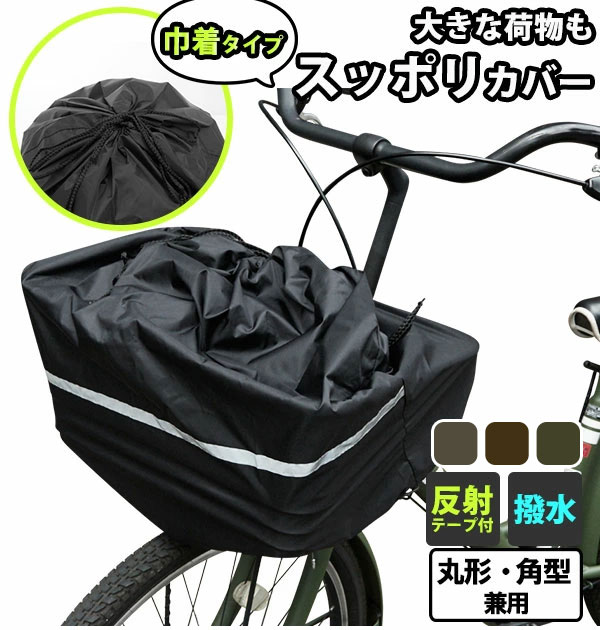 | 商品説明 | ひったくり・雨濡れ防止に!安全バスケットカバー☆大きな荷物もすっぽりカバー、雨やほこりを防ぎます。夜間にも安全な反射テープ付。標準的な自転車の丸カゴ角カゴにご利用頂けます。 【取付方法】1.すその切れ目部分をハンドル側にし、カゴの上からかぶせます。 2.カゴの底のひもをしぼり、結んでください。 |
