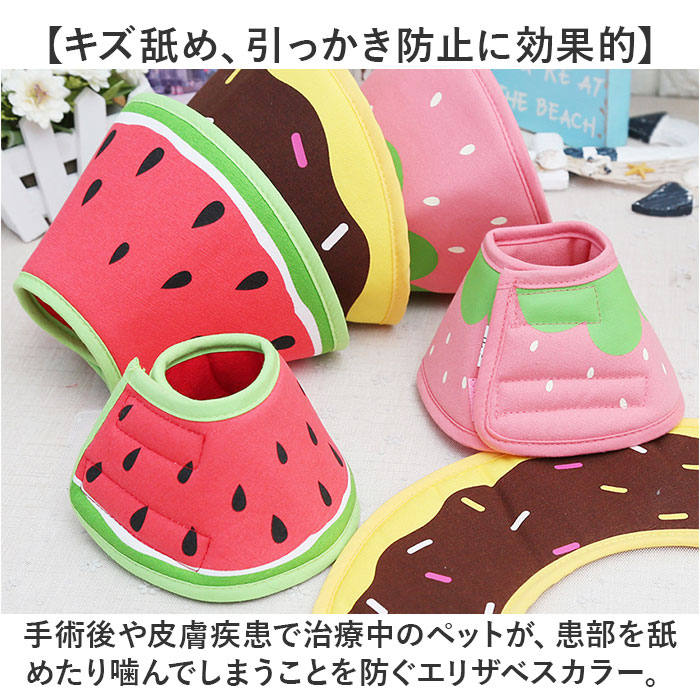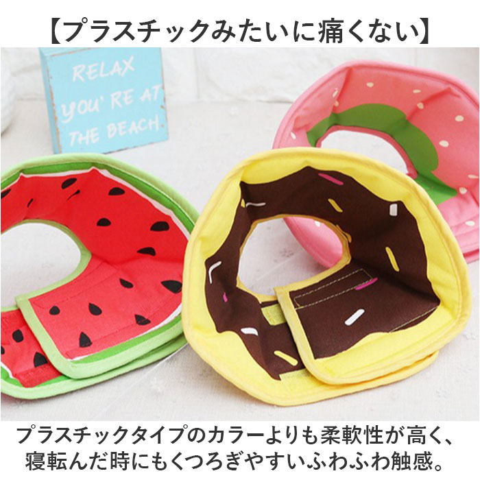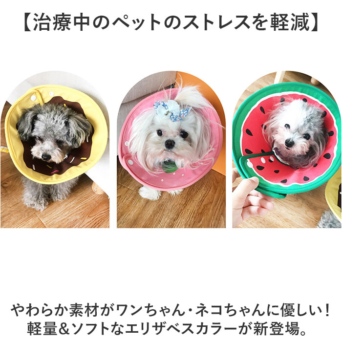 | 【治療中のペットのストレスを軽減】 ・やわらか素材がワンちゃん・ネコちゃんに優しい!軽量&ソフトなエリザベスカラーが新登場。 【キズ舐め、引っかき防止に効果的】 ・手術後や皮膚疾患で治療中のペットが、患部を舐めたり噛んでしまうことを防ぐエリザベスカラー。 【ふんわり柔らかな着け心地】 ・スポンジをキャンバス生地で包んだ柔らか素材を使用し、ルームウェアみたいに快適な着け心地♪ 【療養中のペットに優しいつくり】 ・エリザベスカラーが壁や家具などにぶつかった時のショックを軽減!ペットの身体を優しく保護。 【プラスチックみたいに痛くない】 ・プラスチックタイプのカラーよりも柔軟性が高く、寝転んだ時にもくつろぎやすいふわふわ触感。 【ごはんが食べやすいデザイン】 ・カラーがフードボウルにぶつからないので、お水を飲んだりお食事する時もストレスフリー。 【面ファスナーでワンタッチ装着】 ・首回りは、カラーの付け外しがしやすく、サイズの微調整が簡単な面ファスナータイプ。 【ご家庭でカンタンお洗濯♪】 ・布素材なので、汚れが気になるときには手軽にご家庭で手洗いできるのも嬉しいポイント。 【ぴったりサイズが見つかる!】 ・XS〜Lサイズまでの4サイズ展開で、ペットの身体に合わせてピッタリサイズがチョイス可能! 【ポップでお洒落なカラーリング】 ・クールなデニム生地からポップなフルーツ柄まで、ペットのお顔が明るく華やぐラインナップ。 |