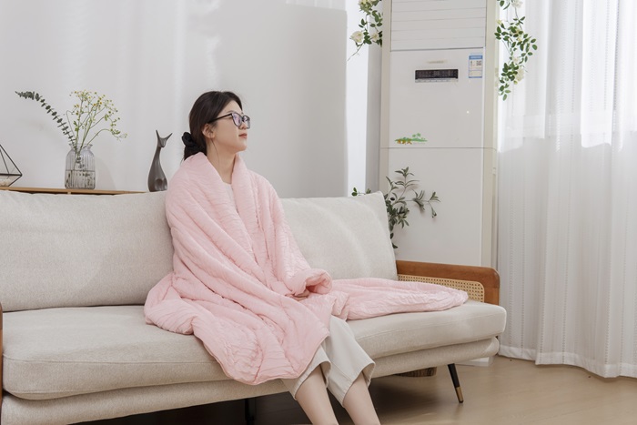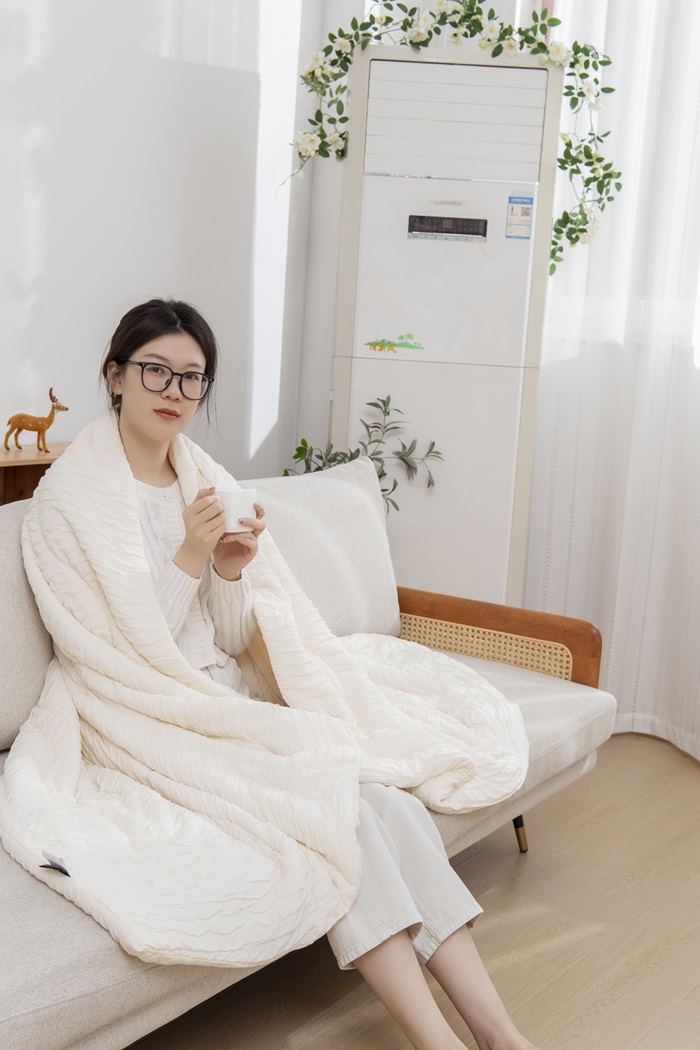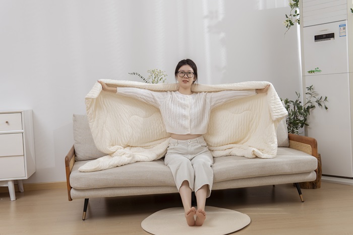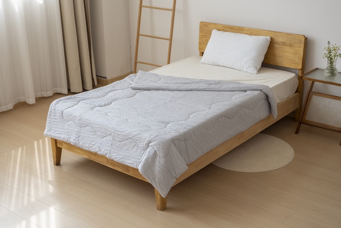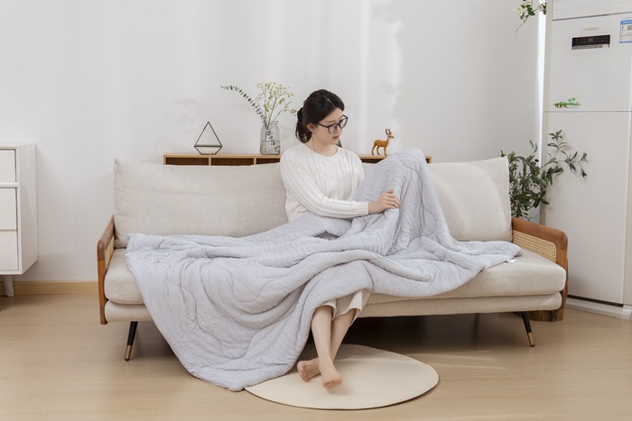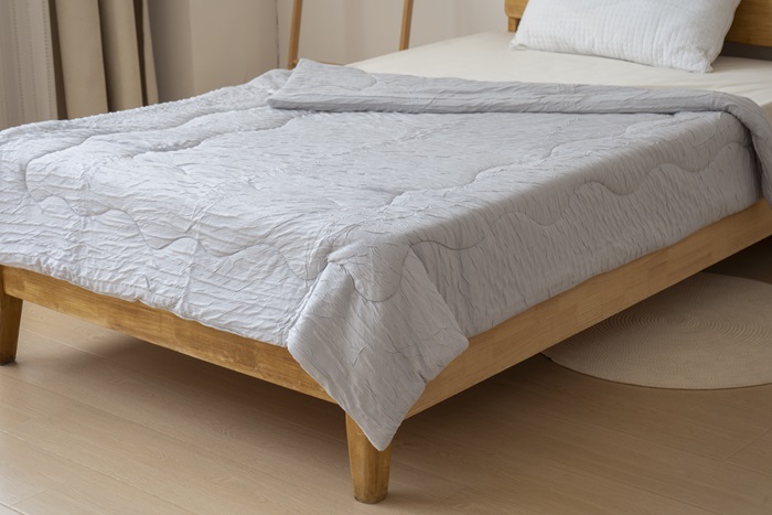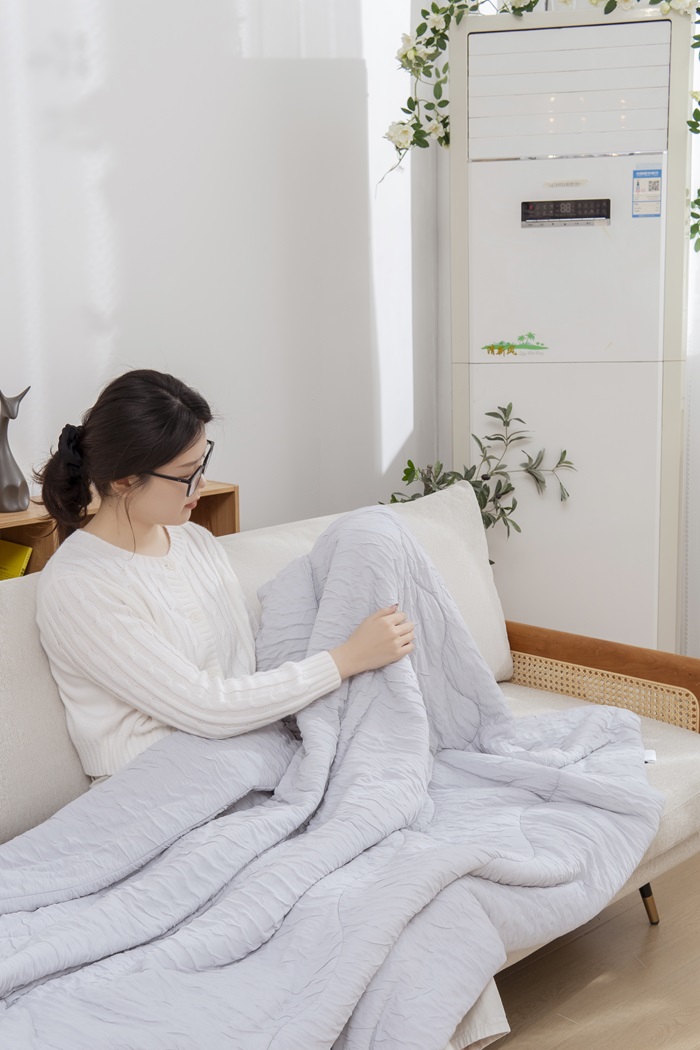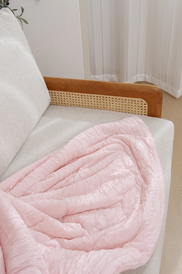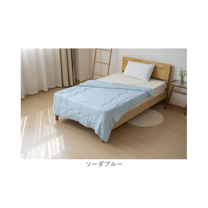 4色のカラーを用意。空気をたっぷり含んで軽い、うす掛け布団。