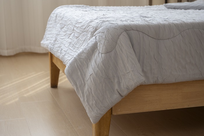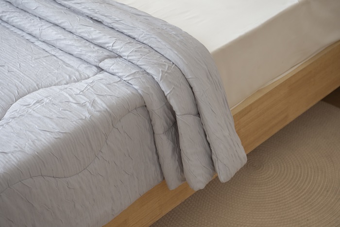 ・軽量設計のふんわりレーヨンのうす掛布団。こだわりの二重構造で、使えば使うほど体に馴染む。