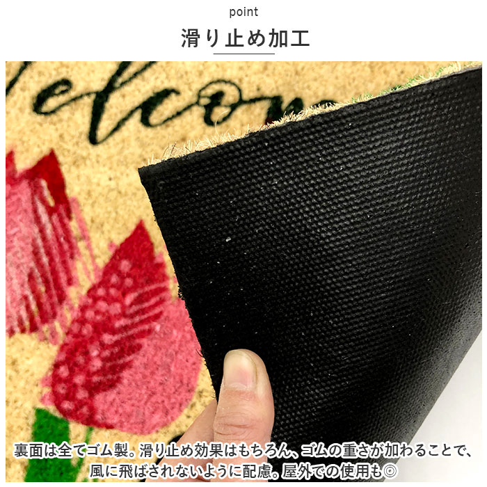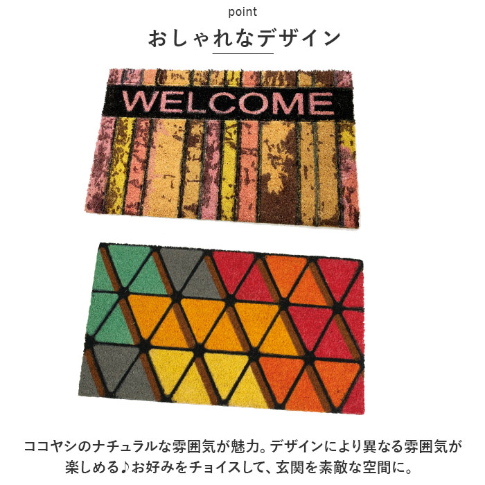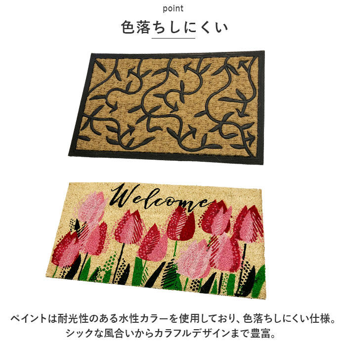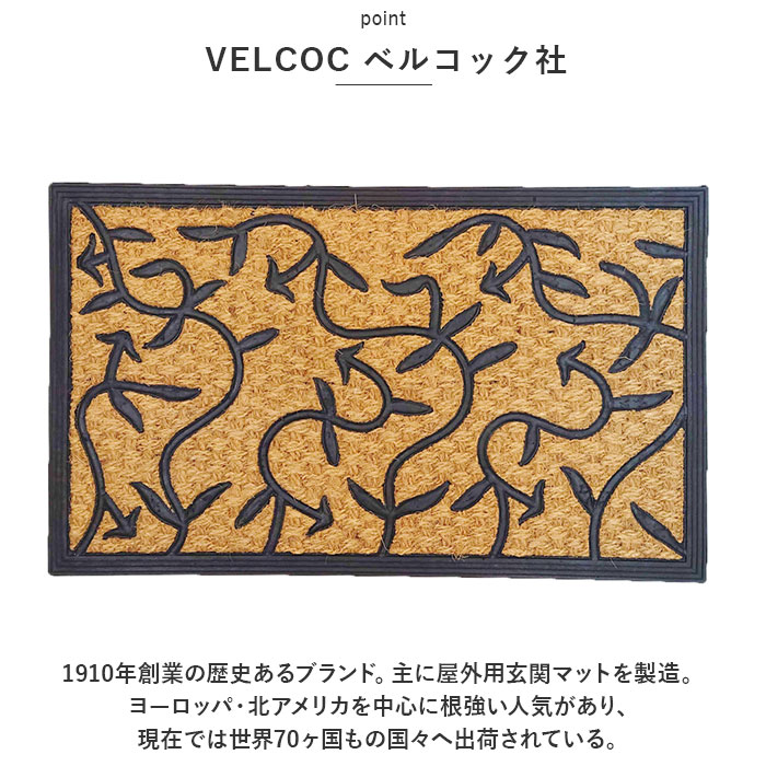 | ・VELCOCより♪ココヤシを贅沢に使った、おしゃれで丈夫な「屋外用玄関マット」が登場。 【VELCOC ベルコック社】 1910年創業の歴史あるブランド。主に屋外用玄関マットを製造。ヨーロッパ・北アメリカを中心に根強い人気があり、現在では世界70ヶ国もの国々へ出荷されている。 【良質なココヤシを使用】 ・インド・ケララ州で生産される良質なココヤシを贅沢に使用。弾力と耐久性に優れ、土足文化を持つ欧米諸国で長年に渡って愛されている。 【玄関の汚れ防止に】 ・ココヤシの繊維がたわしのように靴裏の泥などを落としてくれる◎玄関やフロア内に汚れを持ち込まないよう活躍してくれるアイテム。 【滑り止め加工】 ・裏面は全てゴム製。滑り止め効果はもちろん、ゴムの重さが加わることで、風に飛ばされないように配慮。屋外での使用も◎ 【色落ちしにくい】 ・ペイントは耐光性のある水性カラーを使用しており、色落ちしにくい仕様。シックな風合いからカラフルデザインまで豊富。 【おしゃれなデザイン】 ・ココヤシのナチュラルな雰囲気が魅力。デザインにより異なる雰囲気が楽しめる♪お好みをチョイスして、玄関を素敵な空間に。 【ギフトにも】 ・上質でおしゃれなアイテムなので、ギフトにもおすすめ☆お引越し祝い、結婚祝い、新築祝いなどにぴったり。 |