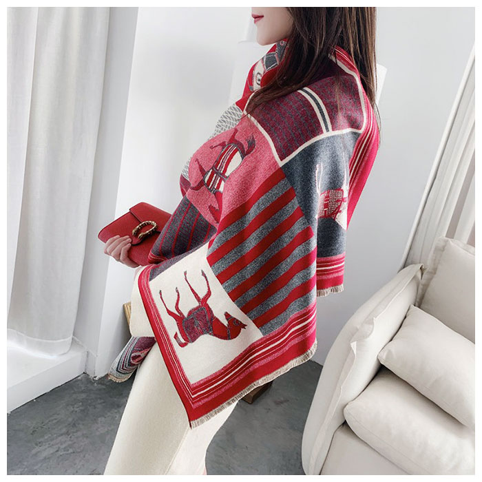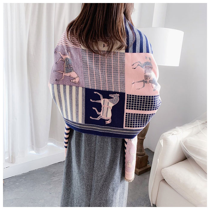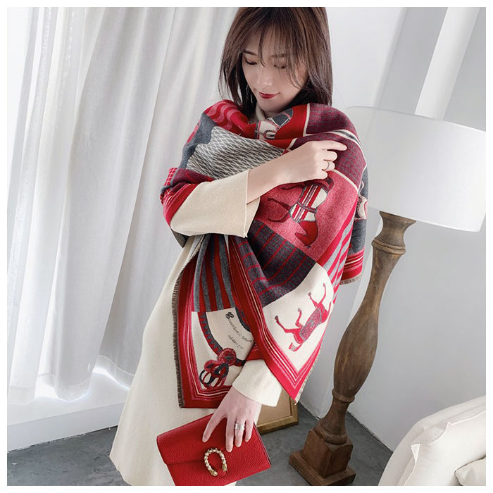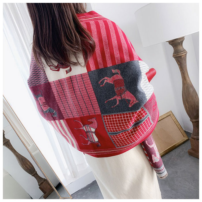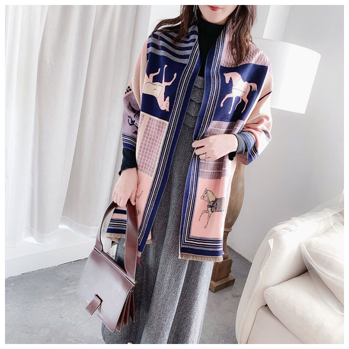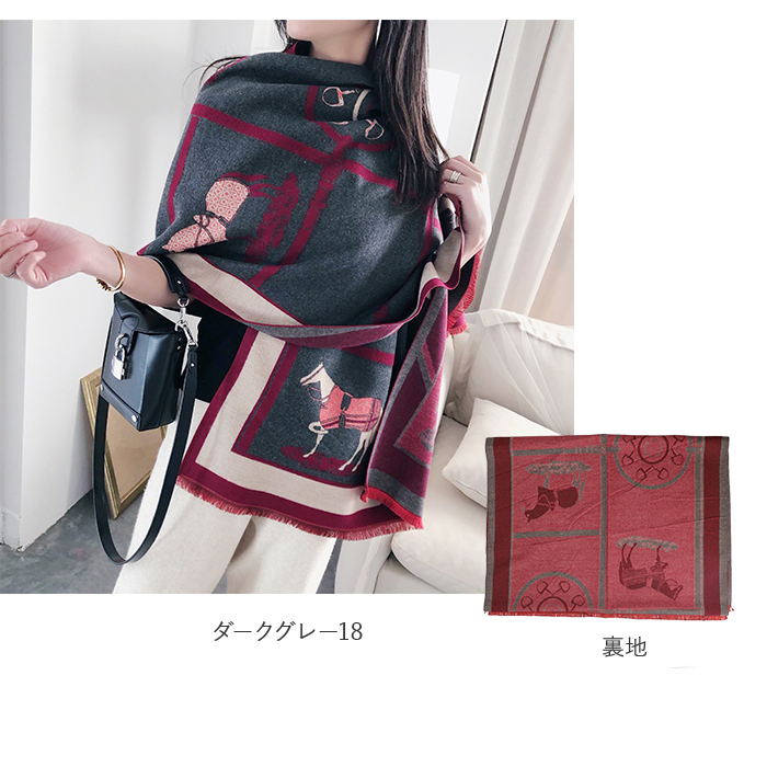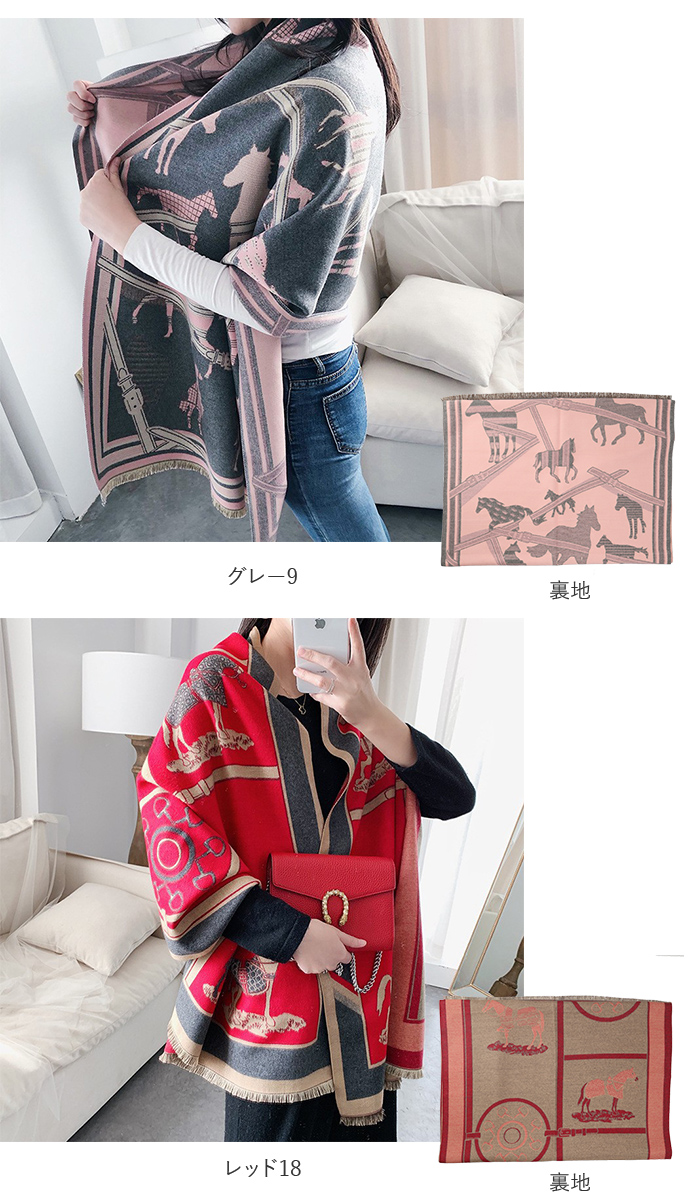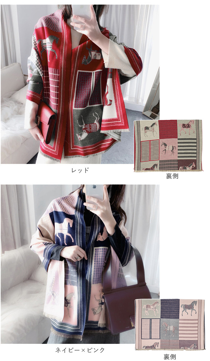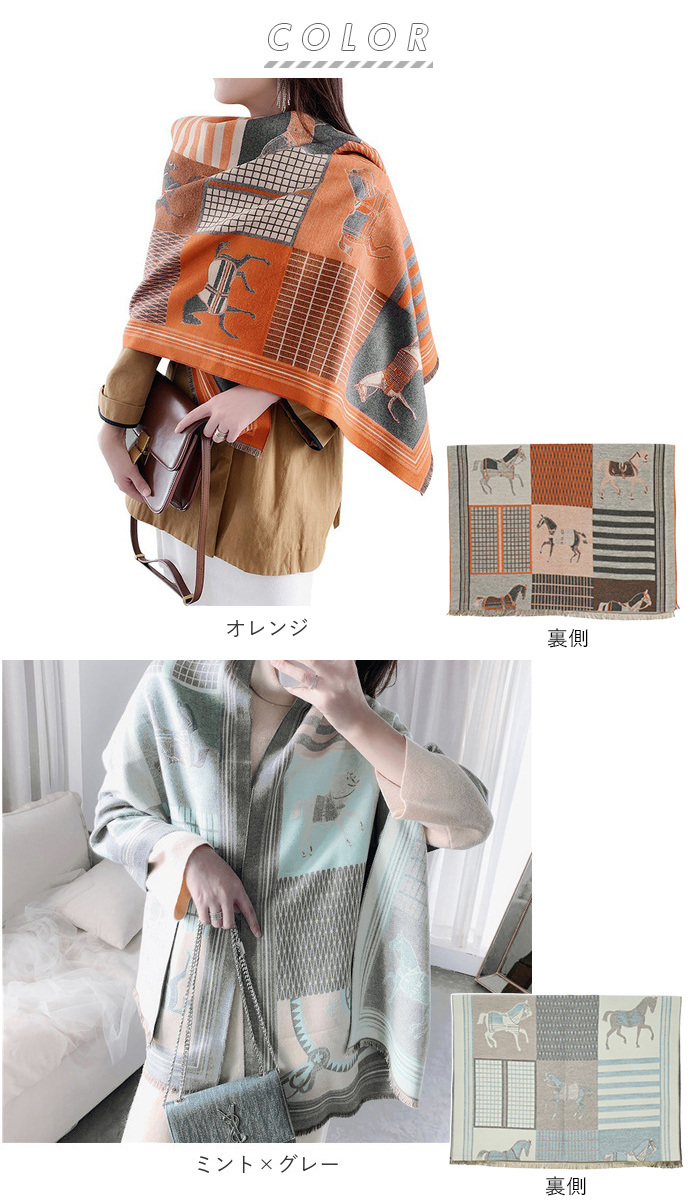 | ・両面使える♪おしゃれなショールマフラーが発売。 ・大判で厚みがあるので、マフラーとしてはもちろんストール、ひざ掛けとしても使える。 ・カシミア風ポリエステル素材の滑らかで優しい肌触りが魅力◎ ・上品な印象を演出してくれるホース柄は、コーディネートのアクセントに♪ ・表は華やかなカラー、裏は落ち着いた色味のリバーシブル仕様。コーデに合わせたり、印象を変えて楽しめるのが嬉しい! |
