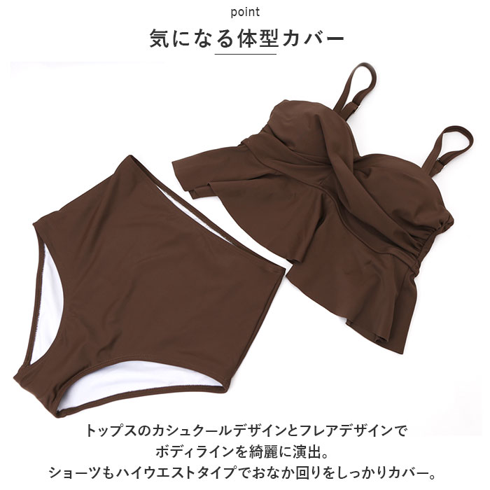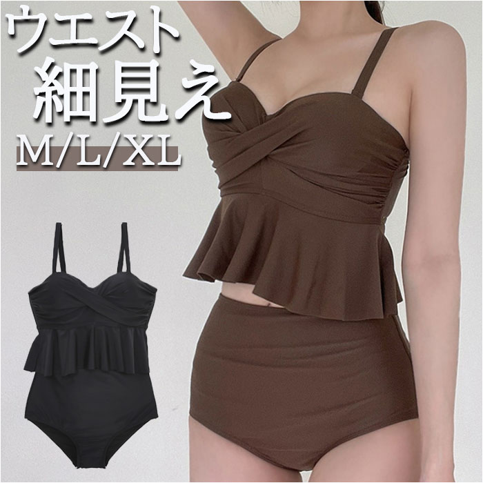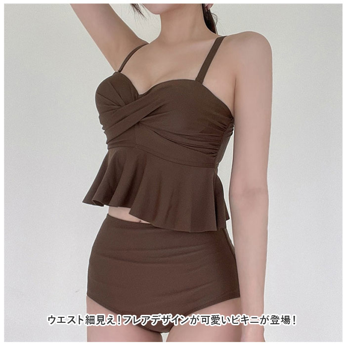 レディース 通販レディース 水着 フリル ビキニ タンキニ ツイスト ハイウエスト 体型カバー セットアップ 上下セット かわいい 露出控えめ ワイヤー 胸 おしゃ