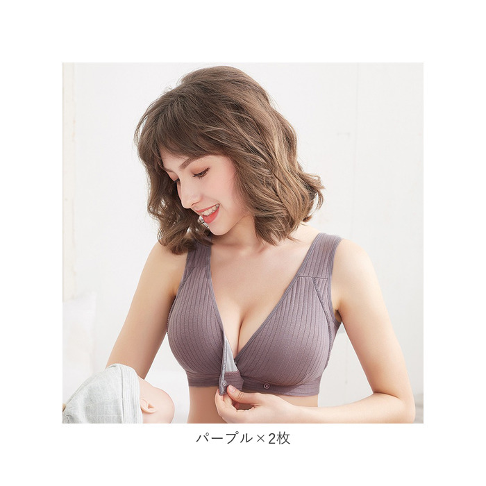 ・ノンワイヤーで痛くない・締め付けない!バストを優しくサポートしてくれる授乳ブラ。洗い替えに便利な2枚セット。