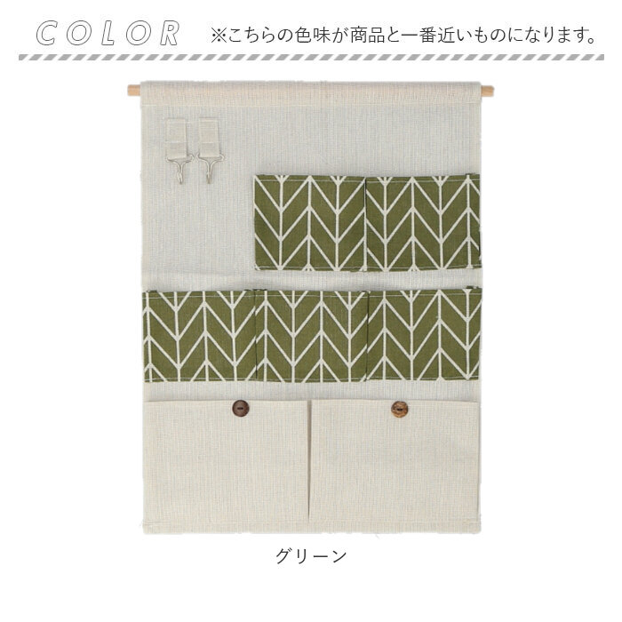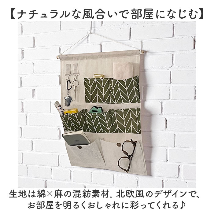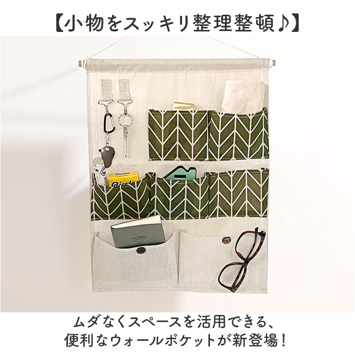 | 【小物をスッキリ整理整頓♪】 ・ムダなくスペースを活用できる、便利なウォールポケットが新登場! 【ポケットたっぷりでスッキリ収納】 ・大小のポケットが7つとフック2つが付いたデザイン。たくさん収納できて、見た目もスッキリ! (※)ボタンはデザインです。 【マチ付きで出し入れラクラク!】 ・ポケットにはマチが付いているので、出し入れラクラク!見た目以上の収納力◎ 【フック付きで鍵の置き場に困らない】 ・フックが付いているから鍵などの小物もサッと掛けられて便利。お出かけ前の準備がスムーズ。 【ナチュラルな風合いで部屋になじむ】 ・生地は綿×麻の混紡素材。北欧風のデザインで、お部屋を明るくおしゃれに彩ってくれる♪ 【お手入れカンタンで清潔キープ】 ・木製バーは取り外し可能。汚れが気になるときは手洗いOKで、いつでも清潔感をキープ。 【家中どこでも大活躍!】 ・リビングはもちろん、撥水加工されたポケットなのでキッチンや洗面所など水まわりでも大活躍! |