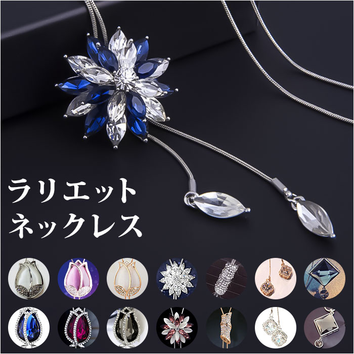 ・留め具がなくつけ外しが簡単なラリエットネックレス♪長さやサイズなども調節しやすく手軽にアクセサリーを楽しめるのもポイント。