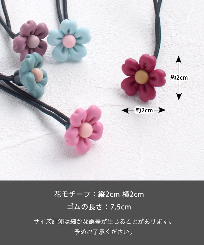 | 花モチーフ:縦2cm/横2cm/ゴムの長さ:7.5cm |