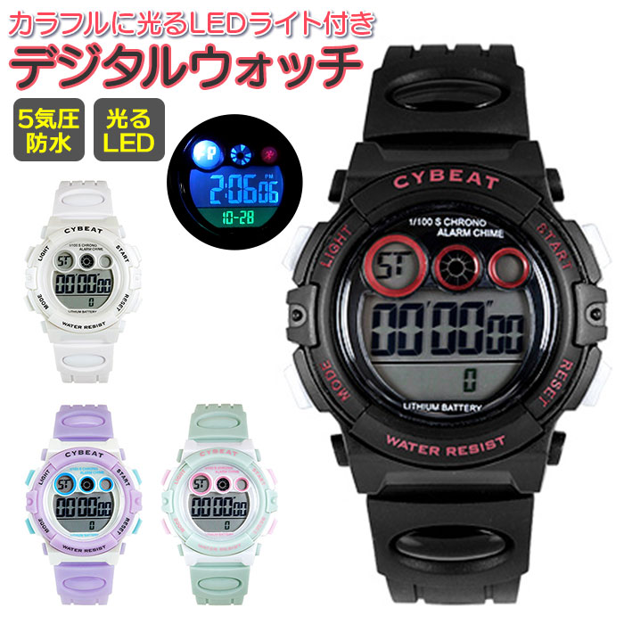 | ・カラフルに光るLEDライト付き♪5気圧防水対応のデジタルウォッチが新登場。 ・うれしい5気圧防水(日常生活防水)仕様。洗顔時・小雨などに一時的に濡れる程度なら大丈夫♪(※50m防水と同等ですが、プールや海でのご使用は故障の原因となるため、お控えください。) ・LIGHTボタンを押すと全色連続で点灯する、フラッシュライト機能付き! ・時刻、日付、曜日が表示されるカレンダー機能を搭載。 ・約20秒鳴り続けるアラーム&再アラーム、時報(チャイム)機能、ストップウォッチ・スプリットタイム操作が可能なクロノグラフ機能も付いた多機能ウォッチ。 ・デジタル式なので、時刻などを一目で確認可能。お子さま用にぴったり。 ・電池内蔵ですぐに使えるのが嬉しい!(※生産時に正常な電池を組み込んでおりますが、お買い上げいただくまでの期間も作動し続けているため、ある程度は電池を消耗しております。) ・お誕生日などのプレゼントにもおすすめ。 |