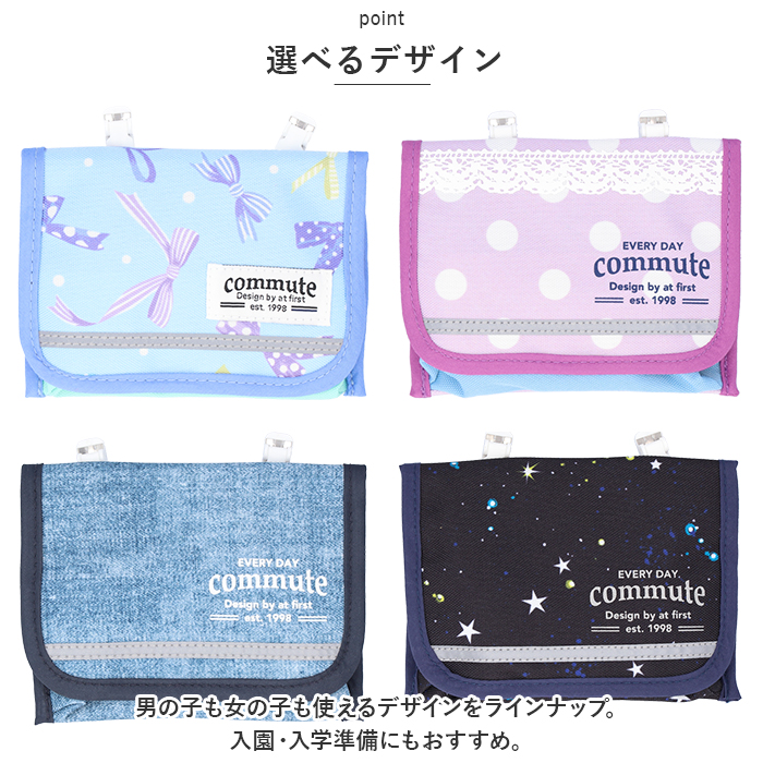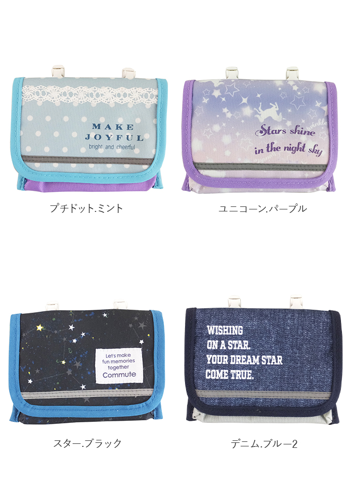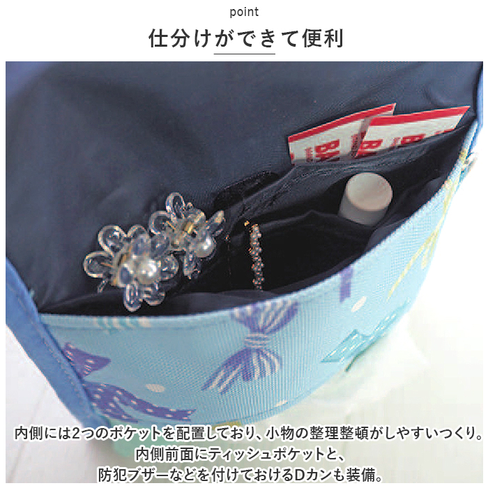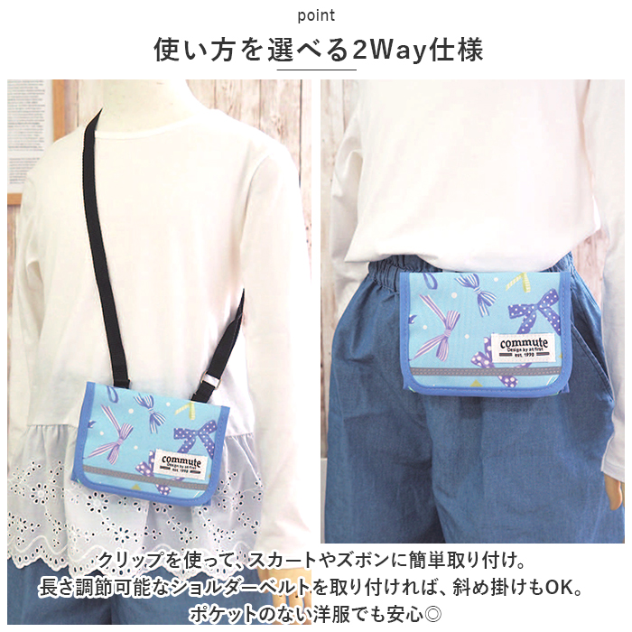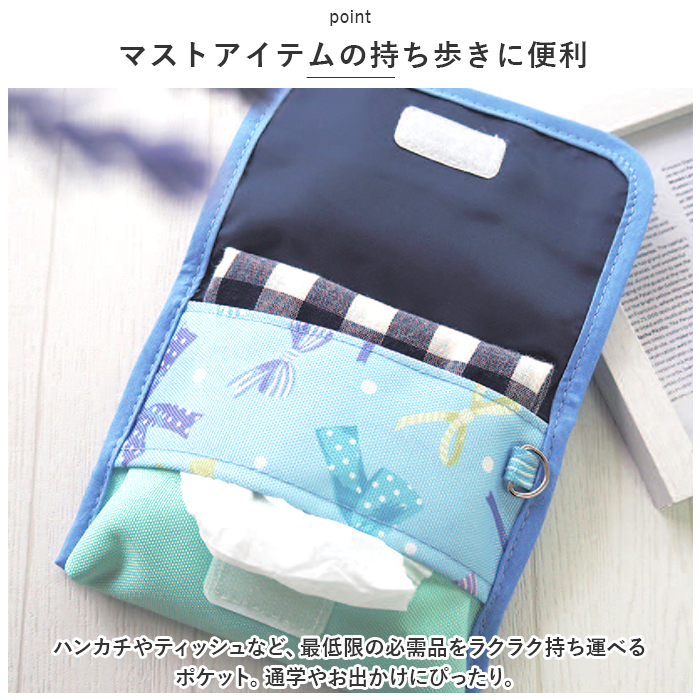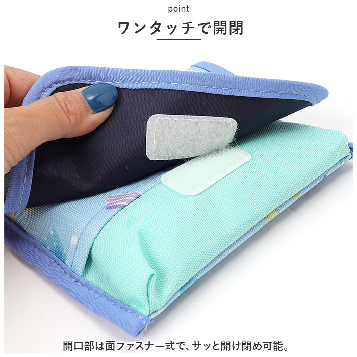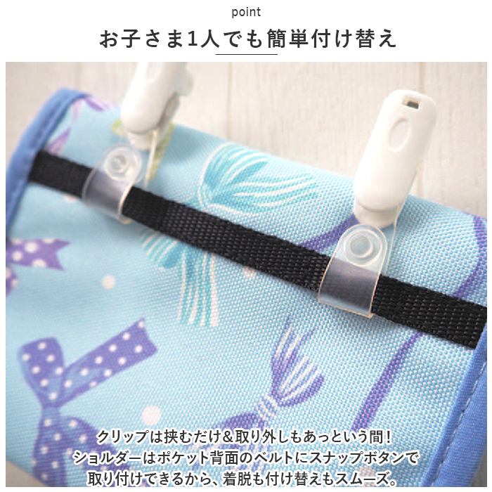 | ・クリップ&ショルダーベルト付き☆用途に合わせて使える「2Way移動ポケット」が新登場。 【マストアイテムの持ち歩きに便利】 ・ハンカチやティッシュなど、最低限の必需品をラクラク持ち運べるポケット。通学やお出かけにぴったり。 【使い方を選べる2Way仕様】 ・クリップを使って、スカートやズボンに簡単取り付け。長さ調節可能なショルダーベルトを取り付ければ、斜め掛けもOK。ポケットのない洋服でも安心◎ 【お子さま1人でも簡単付け替え】 ・クリップは挟むだけ&取り外しもあっという間!ショルダーはポケット背面のベルトにスナップボタンで取り付けできるから、着脱も付け替えもスムーズ。 【ワンタッチで開閉】 ・開口部は面ファスナー式で、サッと開け閉め可能。 【仕分けができて便利】 ・内側には2つのポケットを配置しており、小物の整理整頓がしやすいつくり。内側前面にティッシュポケットと、防犯ブザーなどを付けておけるDカンも装備。 【暗い夜道で光る!】 ・前面には暗闇でヘッドライトの光を反射する反射材付きで、パパ・ママも安心。 【選べるデザイン】 ・男の子も女の子も使えるデザインをラインナップ。入園・入学準備にもおすすめ。 【ポケット仕様】 ・内側:面ファスナーポケット×1、オープンポケット×1 ・フラップ内側前面:ティッシュポケット×1 |