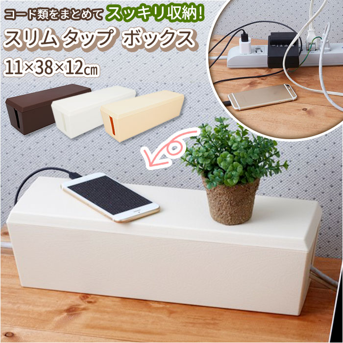 | ・ごちゃつく電源タップやコード類をまとめてスッキリ収納できる、スリムタップボックス。 ・接続した状態の電源タップをそのままボックスに入れ、両サイドの溝から必要なコードを出してフタを閉めればOK! 6口タップ(長さ約32.5cmまで)もすっぽり収まるワイドタイプ。(※種類によっては、コードやアダプタが入りきらない場合もあります。) ・奥行約12cmのスリムなサイズ感で、置き場所を選ばず使えるのが嬉しい♪ ・電源タップとコンセントの間にたまりやすいホコリを防いでくれるので、見た目もキレイ!お掃除がラクチンなのもポイント。 ・フタの上に充電中のスマホなどを置いて、空間を有効活用◎ ・安心の日本製。インテリアに馴染みやすい、シンプルなカラーバリエーション。 |