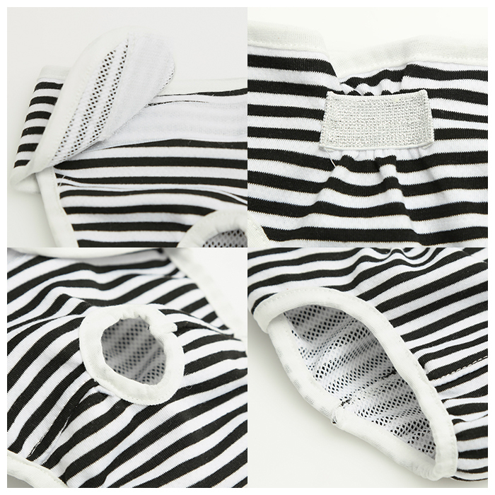 | ・ワンちゃんの散歩等でのマーキング対策やトイレの失敗の対策にぴったりな、犬用マナーパンツ。 ・マジックテープ式なので、簡単に着脱やサイズ調整が可能。 ・腰部分には伸縮性のあるゴム素材を採用。しっぽを通す穴も付いているのでしっかりフィットし、ズレを防止してくれる。 ・内側は通気性抜群なメッシュ仕様なので、蒸れを防止しワンちゃんも快適に過ごすことができる。 ・マリン風のワンポイントとボーダー柄で、おしゃれさもアップ♪ ・サニタリー用や老犬の介護用としても活躍するアイテム。(※マナーパンツの中に犬用ナプキン等を入れてご使用ください。) |
