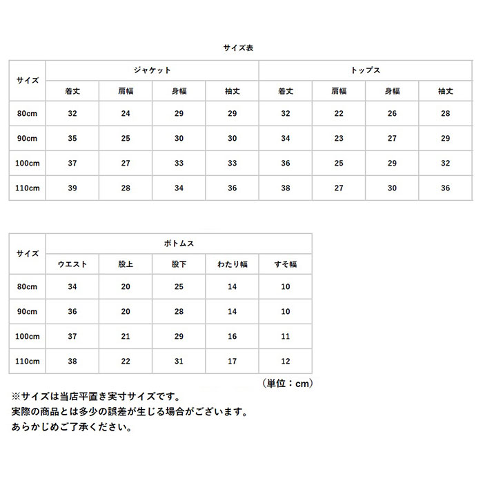 | [キッズ] ・80cm ・90cm ・100cm ・110cm ※サイズについて詳細は、商品画像の中にあるサイズ表をご覧くださいませ。 |
