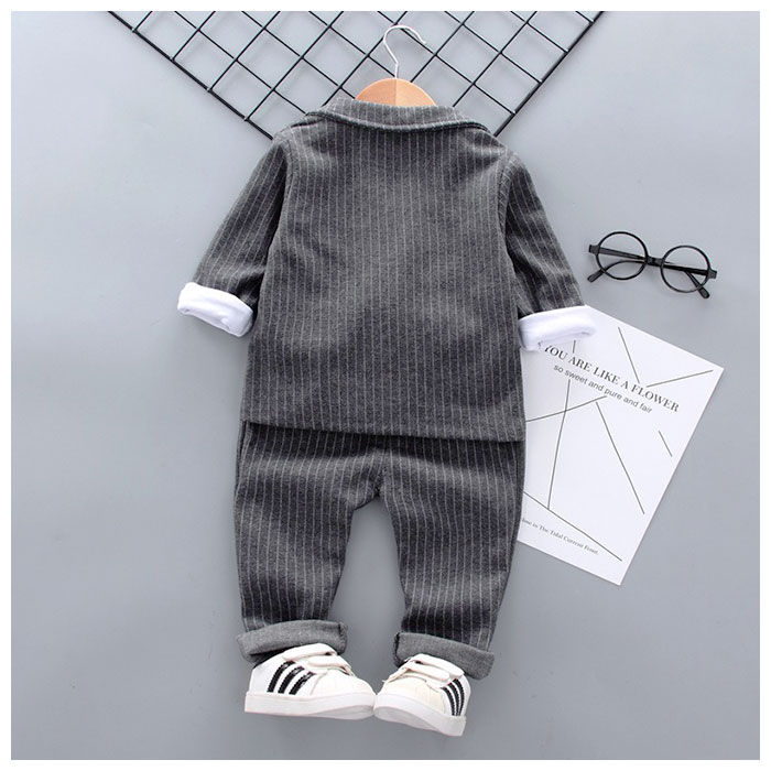 | ・男の子用、長袖フォーマルスーツ3点セットが発売。 ・ジャケットはワンボタンタイプ。フロントにミニポケット2つ付き。 ・左胸にあしわられたワッペンがワンポイントに♪ ・トップスはシンプルなロングTシャツにスーツと同じ生地で作られた蝶ネクタイをあしらったデザイン。 ・ボトムスは着脱がラクなウエストゴム仕様。両サイドにポケット付き。 ・伸縮性のある肌触りの良い生地を採用。スーツなのに軽量な着心地。 80cmサイズから110cmサイズまで展開しているから、兄弟でお揃いもかっこいい! |
