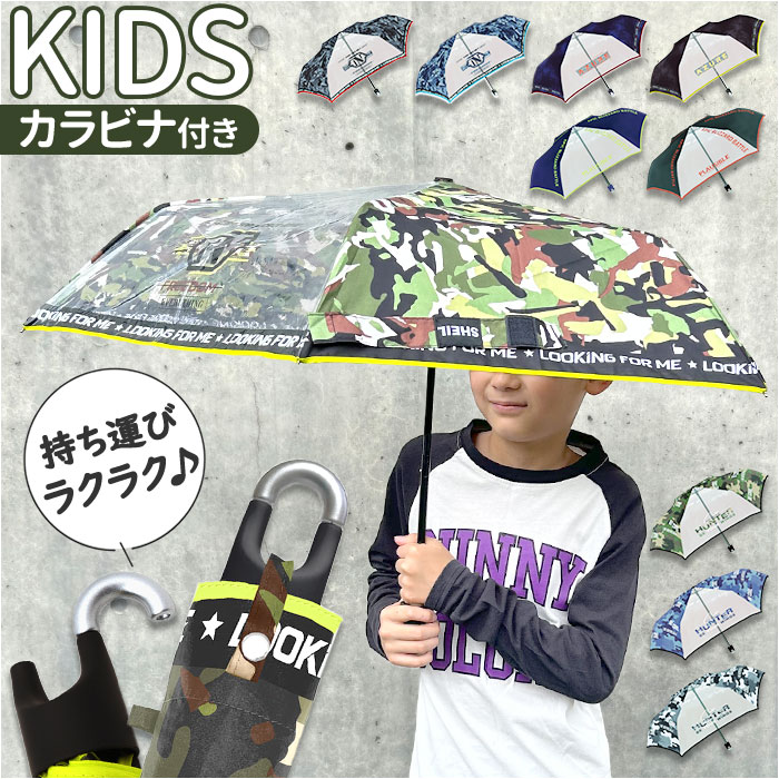 | 50cm 子ども折りたたみ傘 カラビナ手元 透明窓1面 |