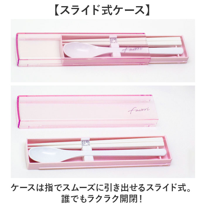 | 【毎日のランチに活躍】 ・スライド式で使いやすい、箸とスプーンのコンビセット。 【スライド式ケース】 ・ケースは指でスムーズに引き出せるスライド式。誰でもラクラク開閉! 【ピタッと収まる収納】 ・区切りパーツ付き。パーツはシリコーン製なので、持ち運ぶ時にカチャカチャ音が鳴らないのもポイント。 【食洗機対応でお手入れ楽】 ・食洗機で洗えるから、忙しい毎日でもサッと片付けられて家事の負担を軽くしてくれる便利さ。 【箸とスプーンの2点セット】 ・約18cmの箸とスプーンがセットになっているから、お弁当タイムがもっと快適になる充実の内容〇 【うれしい安心設計】 ・バクテキラー配合!銀イオンの抗菌力で、いつも清潔な日本製品。※抗菌加工部分:ケース・お箸・スプーン。抗菌剤の種類:銀等無機抗菌剤 【コンパクトで持ち運び便利】 ・スリムなケースだからバッグやランチボックスにすっきり収まり、荷物がかさばらない! |