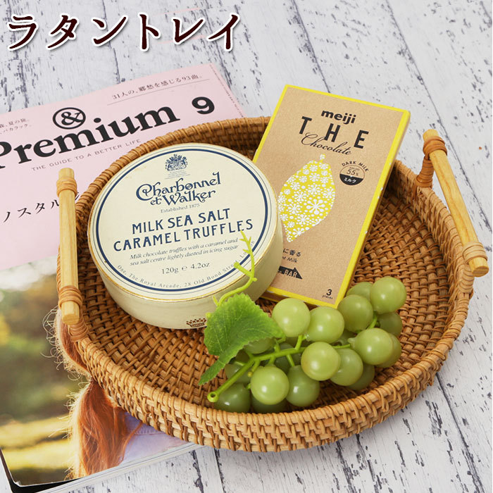 | ・天然素材の「ラタン(藤の蔓)」を編み込んだ、お洒落なトレイが新登場。 ・シンメトリーな端正なフォルムと、エキゾチックな雰囲気が魅力的。 ・ティーセットやクロス類、アロマ用品を入れておけば、いつでもサッと使える「見せる収納」に。(※食品グレードではございません。) ・しっかりとした持ち手が左右についているので、そのままテーブルやベッドサイドに持ち運べるのもポイント。 ・「用の美」備えたアイテムはいくつあっても嬉しいもの。プレゼントにも◎ |