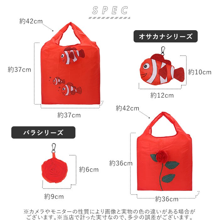 | 【オサカナシリーズ】 [縦]約37cm [横]約37cm [持ち手]約42cm ・折りたたみ時のサイズ [縦]約10cm [横]約12cm 【バラシリーズ】 [縦]約36cm [横]約36cm [持ち手]約42cm ・折りたたみ時のサイズ [縦]約6cm [横]約9cm 【クロネコ】 [縦]約37cm [横]約37cm [持ち手]約42cm ・折りたたみ時のサイズ [縦]約10cm [横]約8cm ※サイズは当店平置き実寸サイズです。実際の商品とは多少の誤差が生じる場合がございます。あらかじめご了承ください。 |