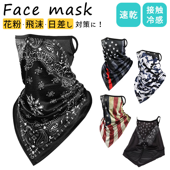 | ・花粉や飛沫、日差し対策に!息苦しさのない通気性に優れたフェイスカバーが登場。 ・素早く汗を吸収し、速乾性に優れているので蒸れにくく快適。気になる咳の飛沫対策にもおススメ♪ ・素材は肌触りが良く、滑らかで軽い接触冷感生地を使用。風に当たるとひんやり気持ちいい。 ・耳にかけるタイプでズレにくいのも嬉しいポイント。 |