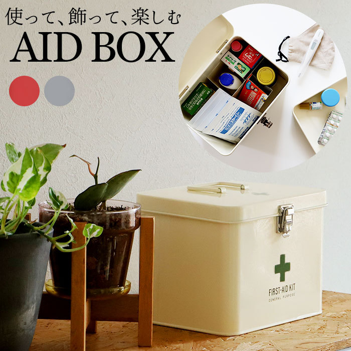 ・スチールの外観とツヤやかな塗装が印象的なメディコ・ファーストエイドボックス・Mサイズ。 ・救急箱というと、生活感漂うプラスチック製ケースを思い浮かべてしまう方も多いはず。そんな今までのイメージを覆す、レトロなスチール製のスタイリッシュなフォルムが魅力的。 ・フタを開けて、上段には深さ3.5cm程度の底浅のトレーがあり、よく使うお薬がすぐに見つかり、飲みかけの薬やチューブに入った塗り薬、体温計など細々としたものを入れておくのに便利! ・上段トレーの下は、スチール製の仕切りで大小4つに区切られたスペース。ばんそうこうや箱に入った風邪薬、瓶に入った胃腸薬など、高さのある容器に入った薬を整理して収納できる♪ ・「FIRST AID Kit」の英字ロゴが目を惹くデザインで、お子さまでも救急箱の場所がひと目でわかる! ・上部フタに持ち手ハンドル付きで、持ち運びにも便利。お子さまが外遊びで怪我をした時にもすぐに持ち出せる。 ・スチール製のシンプルな小物入れのような見た目で、ウッディーなフローリングやグリーンのインテリアの中でも違和感なくマッチ♪一人暮らしのお部屋でも邪魔にならないコンパクトなサイズ。 |