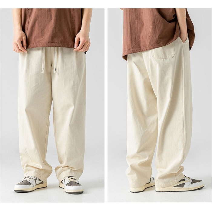 | 【おしゃれなカジュアルスタイル】 ・ゆったりとしたシルエットで、優しく馴染む◎メンズ用「ワイドパンツ」。 【締めつけ感がなくストレスフリー】 ・伸縮性のあるウエストゴム仕様で、着脱ラクチン。紐をキュッと絞って自分サイズにフィット。 【ラインを拾わずストレスフリー】 ・全体的に余裕を持たせつつ、裾にかけてやや細くなるシルエット。程よいダボッと感! 【さらりと軽いコットン素材】 ・素肌に触れてもチクチク感がなく、軽やかに着用。ムレにくく体に負担をかけないつくり。 【小物が入る便利なポケット】 ・左右と片方のバックにポケットを配置。スマホや薄手のハンカチなどをIN。 【お気に入りを選べるカラー】 ・どんなトップスとも合わせやすい、ベーシックカラー。休日のお出掛けに最適。 |