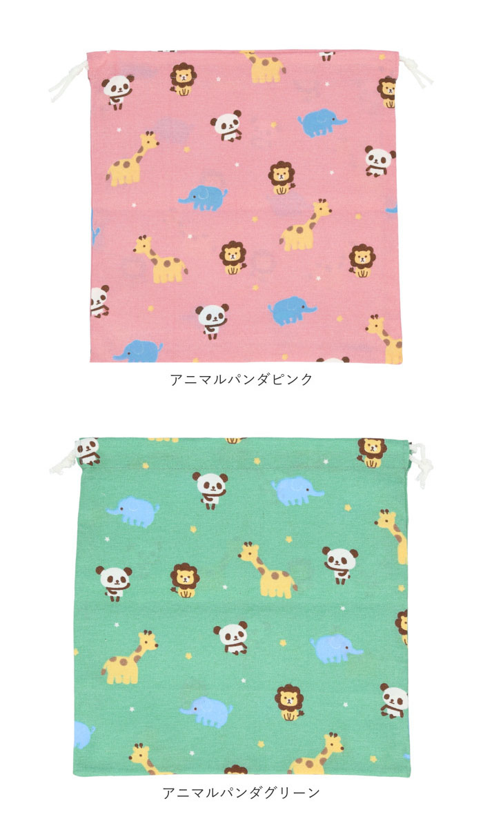 | ・ほっこり可愛いプリントデザイン♪♪お弁当箱入れや給食袋として活躍する巾着。 ・30cm×30cmと大きめサイズ。体操着入れや、お泊りの時のパジャマ入れとしても活躍。 ・サッと紐を絞るだけで巾着状になるので、お子さまでも簡単に開け閉めが可能♪ ・内側にネームタグが付いているから、お友達とお揃いでも大丈夫! ・お菓子や、バッグの中でバラバラになりがちな小物も、すっきりまとめておけて便利◎ |