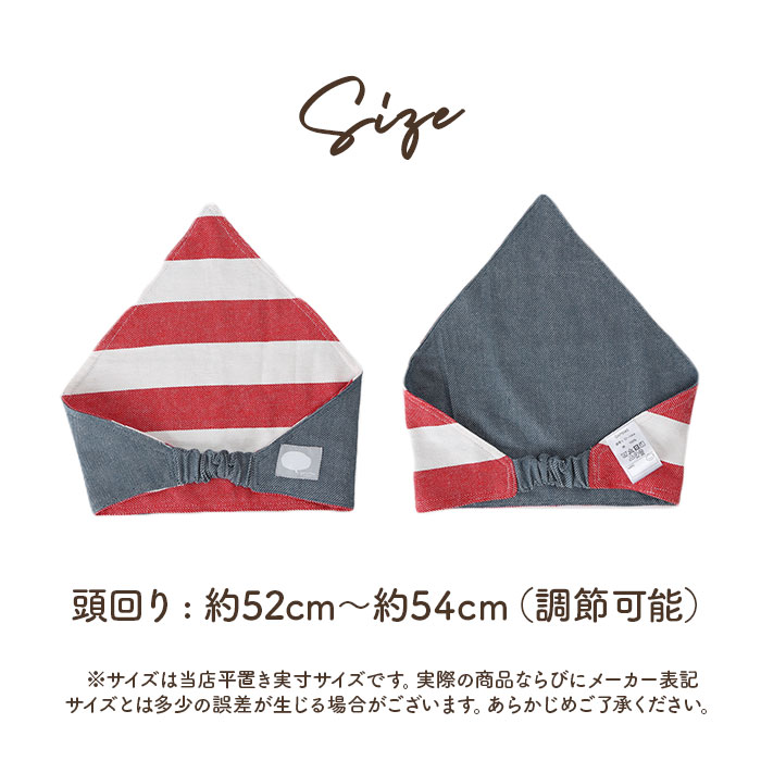 | 【キッズ三角巾】 [頭回り]約52cm〜約54cm(調節可能) ※サイズは当店平置き実寸サイズです。実際の商品ならびにメーカー表記サイズとは多少の誤差が生じる場合がございます。あらかじめご了承ください。 |
