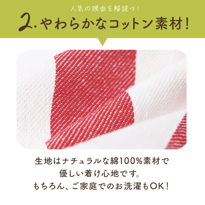 | ・柔らかなコットン生地がお子さまの頭に優しくフィット。お母さんのお手伝いが楽しくなるお子さま用三角巾♪ ・生地の両端をゴムでつないだタイプなので、結ばずにかぶるだけのワンタッチ装着! ・表面と裏面で生地色やデザインの違うリバーシブルタイプ。無地 or ストライプなど、その日の洋服や気分に合わせてチェンジできちゃう☆ ・生地はナチュラルな綿100%素材だから、優しい着け心地。もちろん、ご家庭でのお洗濯もOK! ・吹き出し模様が可愛い、お名前タグ付き!学校の行事やイベントでも、お気に入りのエプロンが迷子にならないから安心。 ・お家でのお料理のお手伝いはもちろん、学校の調理実習や給食の配膳係の時に可愛く着こなして、お友だちと差を付けちゃおう♪ ・三角巾と同じ柄のキッズエプロンを別商品ページにて販売中!(※ストアの検索窓にて、商品コードglapronと入力いただくとご覧いただけます。) |
