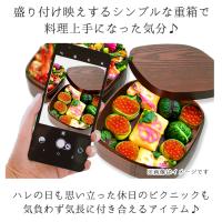 | ・和の風格と可愛らしさを併せ持つ「曲げわっぱ」漆塗り二段重箱。幅21.5cm × 奥行21.5cmサイズでたっぷり入る! ・漆(うるし)塗りの曲げわっぱは耐久性に優れ、丁寧にお手入れをすれば長く使用することができる。 ・伝統的なスタイルをもつ「曲げわっぱ」の重箱は、流れる木目と漆の色合いが美しい。 ・上下二段のファミリーサイズ(5〜6人用)。 ・十字型の間仕切り付きなので、おかずの盛り付けがラクラク♪ ・漆自体に優れた抗菌作用があり、調湿作用も発揮。ご飯の余分な水分を逃がすことで傷みにくく、美味しさをキープ。 ・油ものにも強く、洗う時も中性洗剤の使用が可能。(※水のつけ置きはしないでください。) ・仕上げは乾拭きですむので取扱い方法も簡単。 ・自然の風合いを贅沢に生かした素材感は、日常使いだけでなく行楽などの場を華やかに彩る。 |