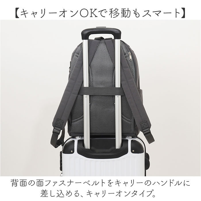 | 【使い勝手バツグンな心強い相棒】 ・収納力もあり色んなシーンで活躍♪「anelloGRANDE フィッティー デイパック」。 【ぴったり心地よく体にフィット】 ・背負った時になだらかな、涙型の横マチ。荷物を入れても形崩れしにくく、シルエットキープ。 【ガバっと開くダブルファスナー】 ・左右どちらからもオープン!前方に大きく開き、ファスナーを閉じればプライバシーを確保。 【A4対応でざっくりひとまとめ】 ・A4がすっぽり収まり、マチも設けた容量約16Lサイズ。着替えなども収納可能。 【ノートPCも楽々!独立ポケット】 ・背面には独立型のクッションポケット。13.3インチまでのPCとA4が収納できる大きさ。 【サクッと取り出せて迷子知らず】 ・独立型ポケットの他にも、6個のポケットとサイドにDカンを配置。小物を探す手間が不要。 【負担をかけず背負い心地快適】 ・軽やかで背面とショルダーベルトにはクッション性をプラス。どちらもムレにくいメッシュ仕様。 【キャリーオンOKで移動もスマート】 ・背面の面ファスナーベルトをキャリーのハンドルに差し込める、キャリーオンタイプ。 【ちょっとの雨なら大丈夫】 ・汚れや水滴を弾きやすい、両面撥水加工済み。お手入れも拭き取るだけ。 (※)完全防水ではありません。 【お揃いで持てるユニセックス仕様】 ・使う人を選ばないシンプルデザイン&カラーリング☆家族やカップルで、お揃いやシェアもOK。 【ポケット仕様】 ・内側:オープンポケット×2、ファスナー式メッシュポケット×1 ・前面:ファスナーポケット×1 ・サイド:オープンポケット×2 ・背面:ファスナー式クッションポケット×1 |